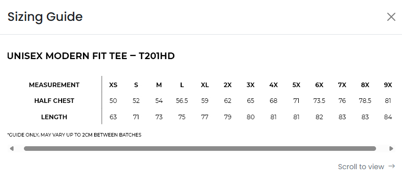 | ADULTS | 2XS | XS | S | M | L | XL | 2XL | 3XL | 4XL | 5XL |